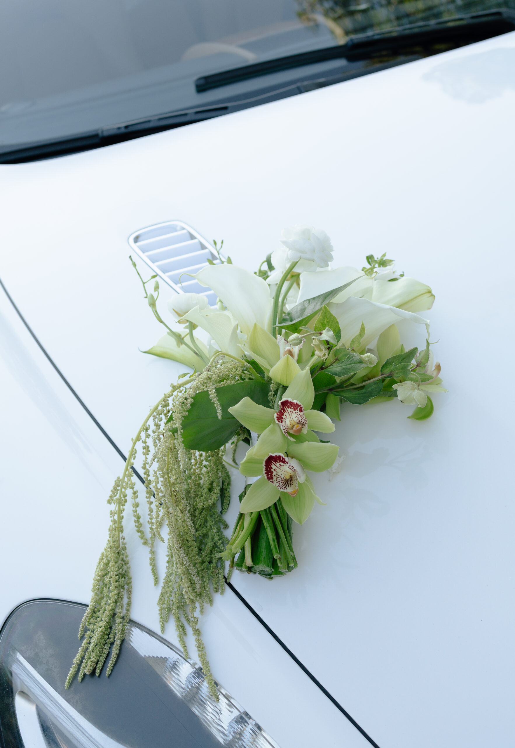 To enhance the romantic vibe, we collaborated with Vogue Flowers. We asked for an asymmetrical bouquet with cascading florals that felt both lush and effortless. The bridal bouquet featured rich textures and seasonal blooms for $265, while a bridesmaids’ bouquet would be at $145 each. These arrangements brought movement and life to the cover, perfectly framing the bride and her gown.