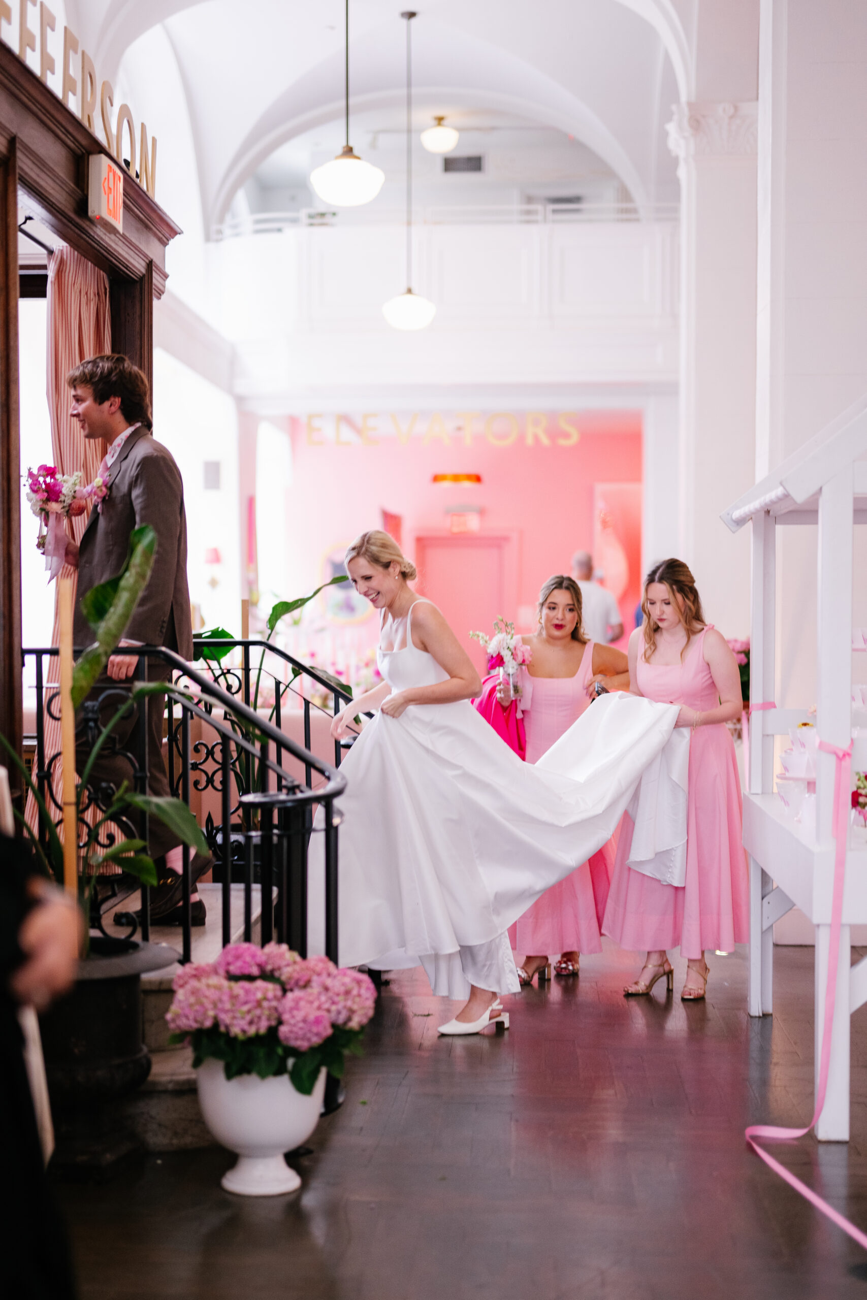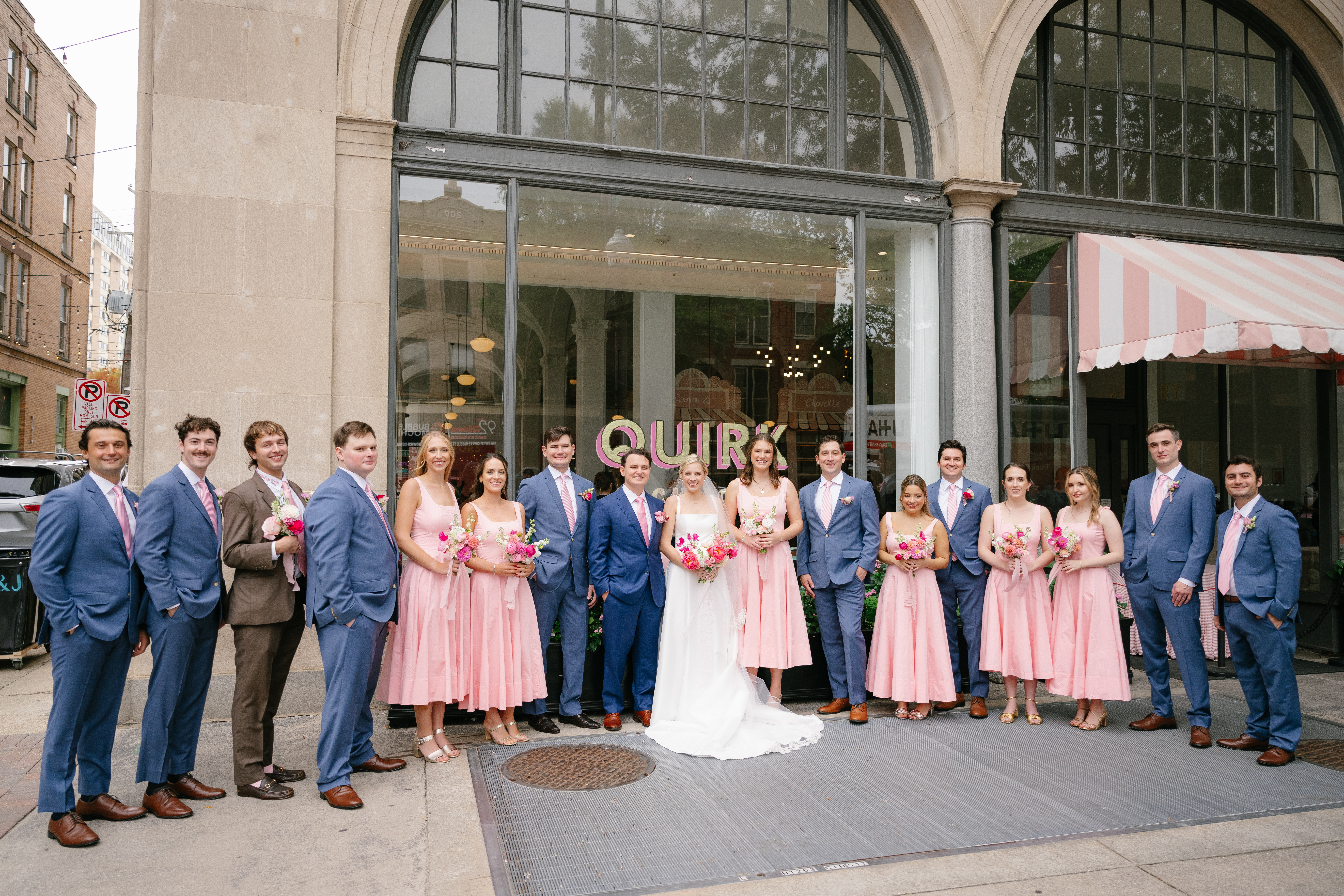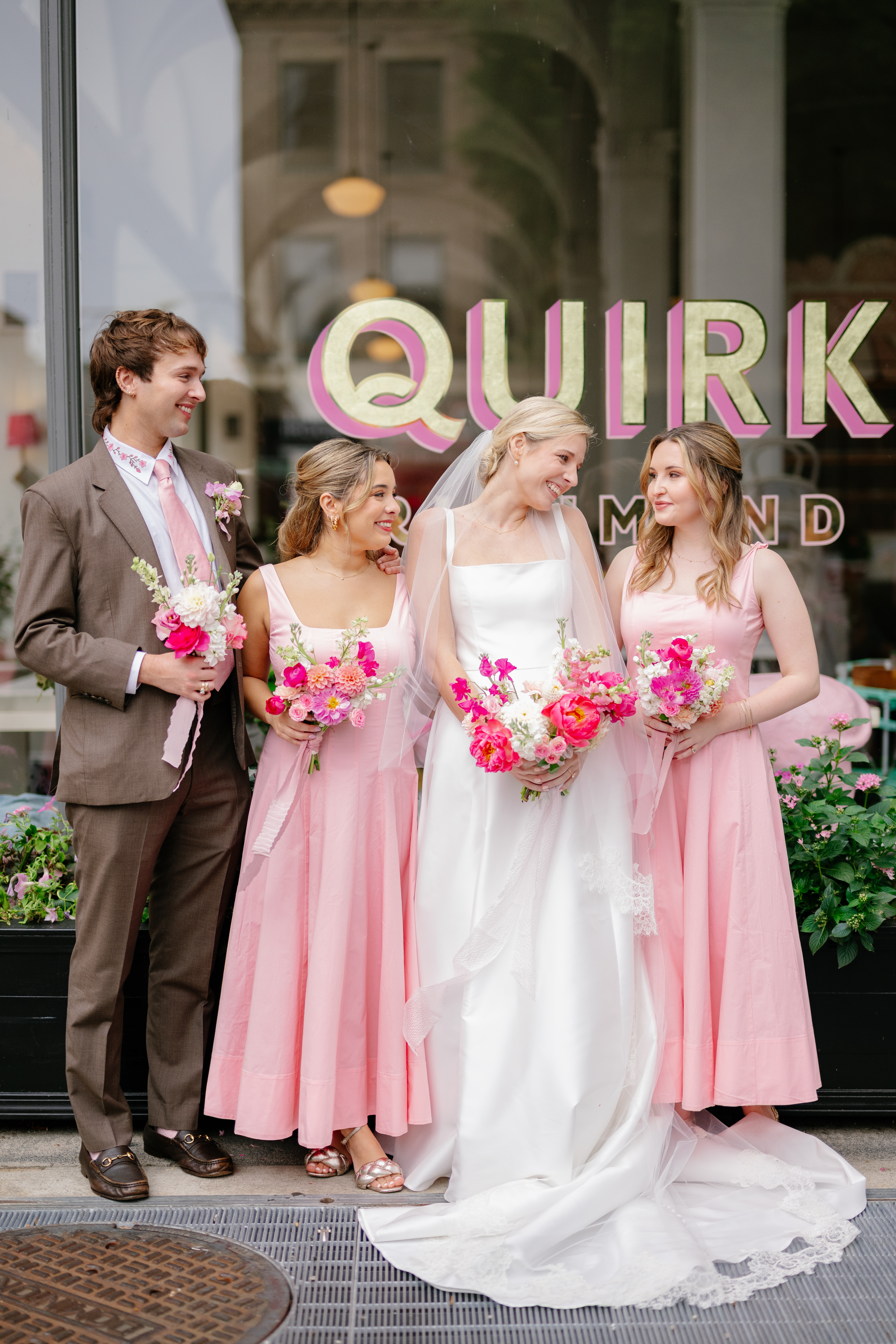 On October 11, 2025, family and friends gathered in Richmond for a day Emma describes in five words: pink, playful, whimsy, joyous, local. The couple exchanged vows at St. James’s Episcopal Church before celebrating downtown at Quirk Hotel, where bold design and heartfelt details created an unforgettable atmosphere.