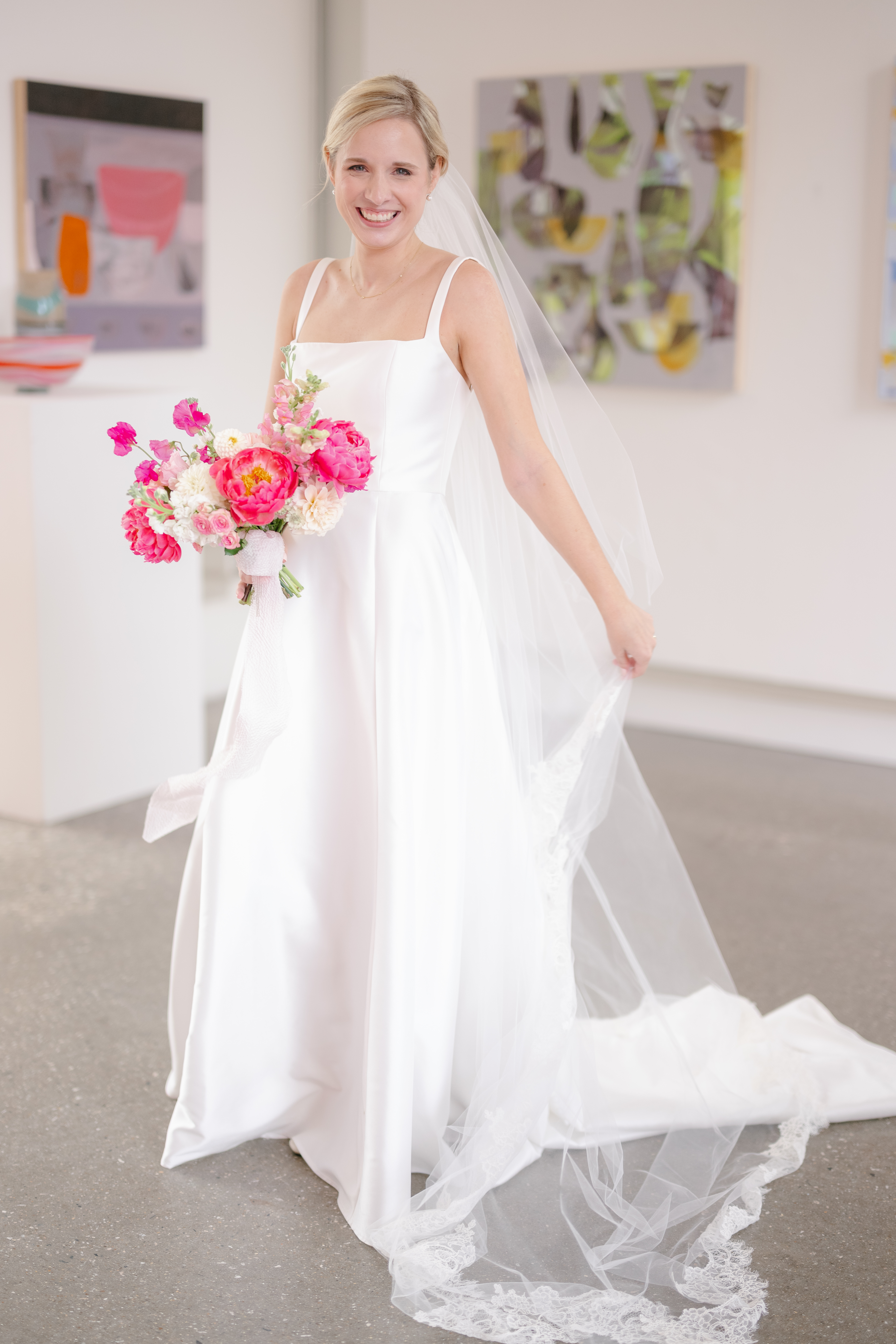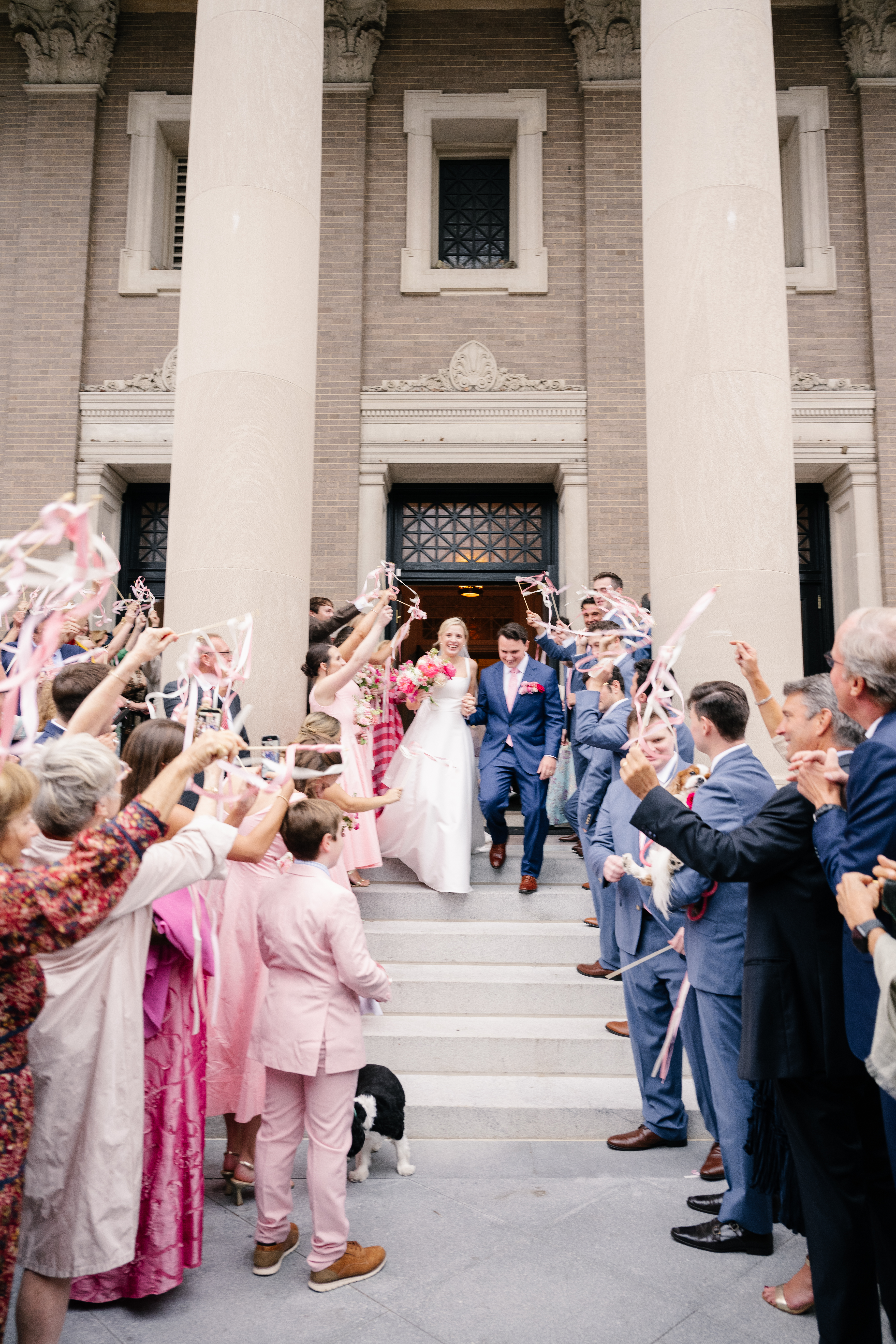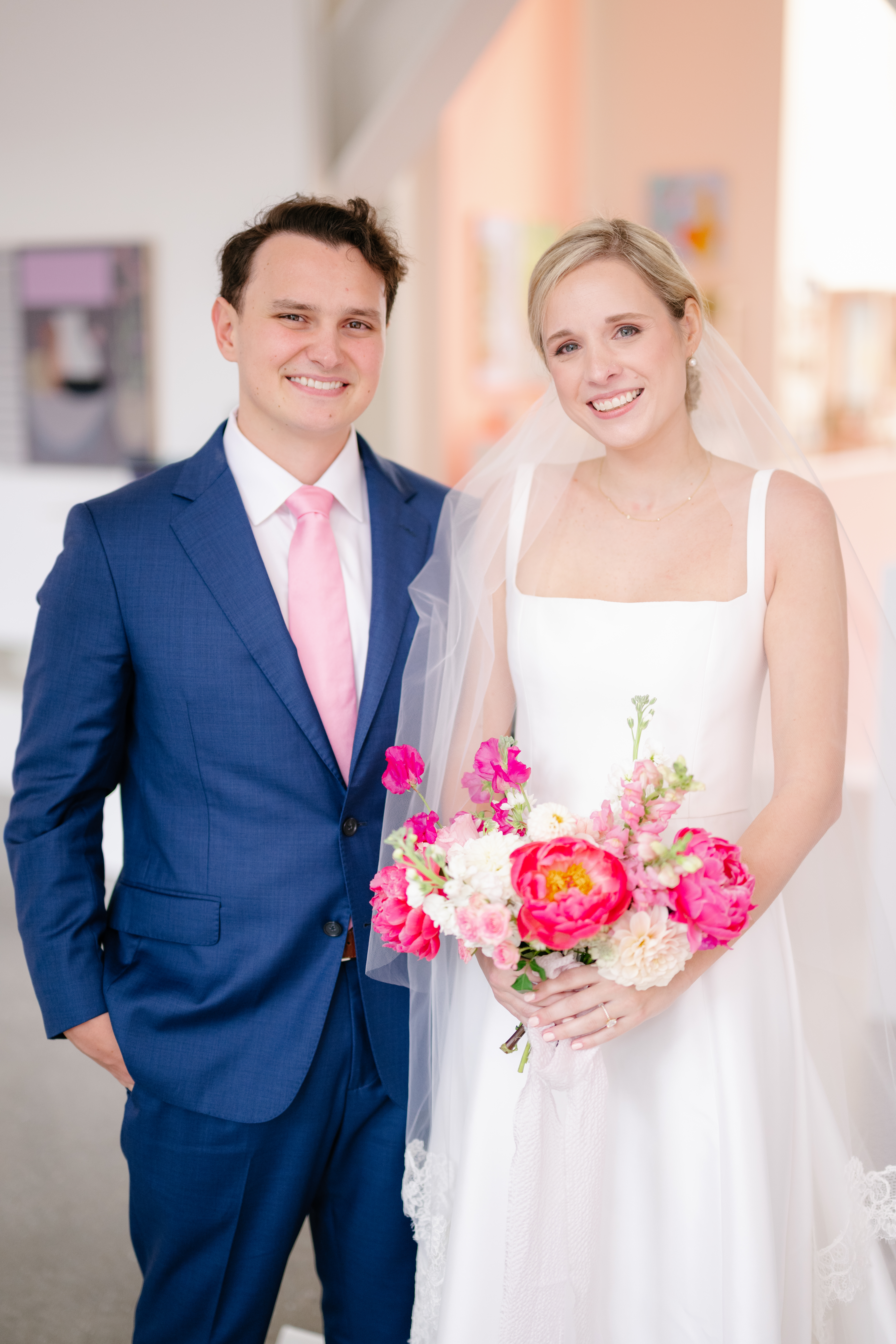 On October 11, 2025, family and friends gathered in Richmond for a day Emma describes in five words: pink, playful, whimsy, joyous, local. The couple exchanged vows at St. James’s Episcopal Church before celebrating downtown at Quirk Hotel, where bold design and heartfelt details created an unforgettable atmosphere.