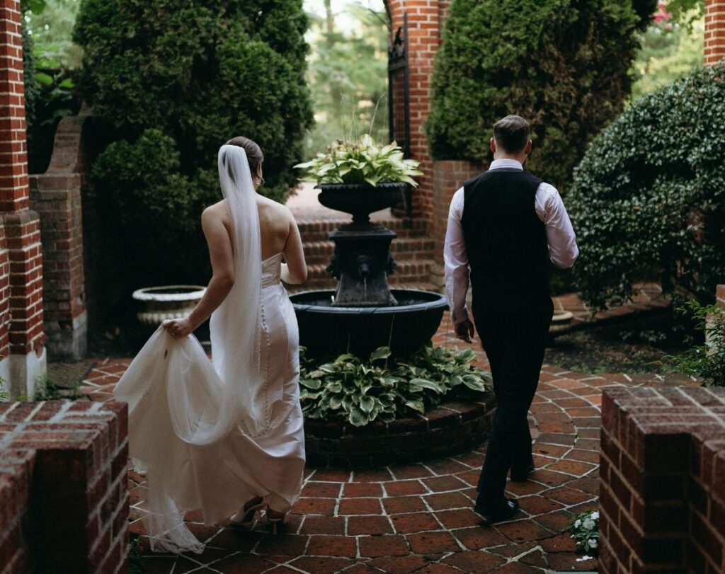Exchange vows in the English Garden on a magnificent brick stage under a singing sycamore tree or in the European Gallery in front of a floor to ceiling grandiose white fireplace under the sparkle of crystal chandeliers.